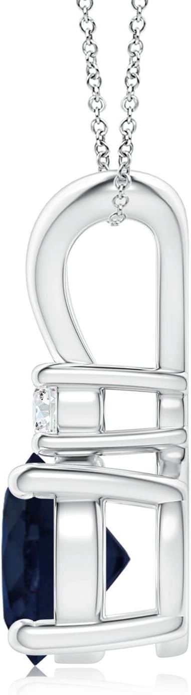 Angara Natural Round Blue Sapphire Solitaire V-Bale Pendant/Necklace with Diamond in Sterling Silver/14K Solid Gold/Platinum for Women | September Birthstone Jewellery for Her | Wedding